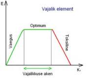 Joonis 1. Nii vajalikud kui ka mittevajalikud metallid muutuvad organismidele ohtlikuks teatud kontsentratsiooni ületamisel (E – organismi elujõulisus, Kv – vajaliku aine kontsentratsioon, Kmv – mittevajaliku aine kontsentratsioon, v – võimalik vajadus üliväikestes kogustes)